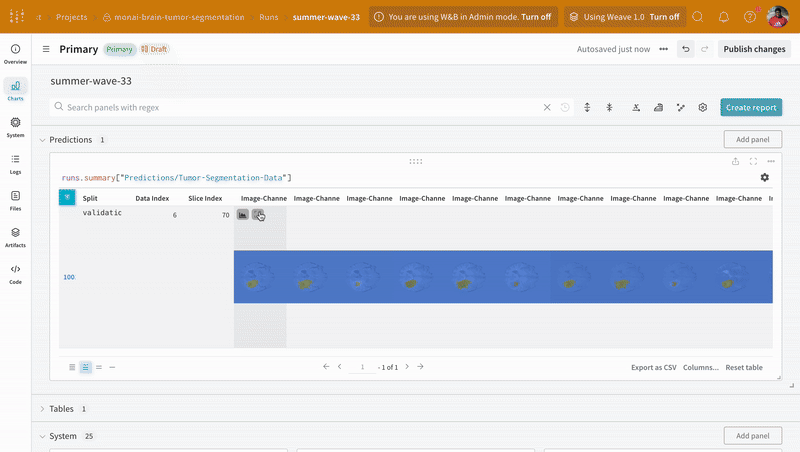 W&B runs automatically log metrics, system information, hyperparameters, terminal output and you’ll see an interactive table with model inputs and outputs.
